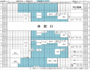 9月15日~9月21日のコース予定表