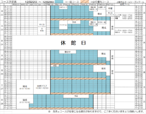 12月22日~12月28日のコース予定表