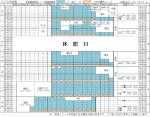 12月22日~12月28日のコース予定表