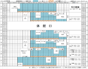 2月23日~3月1日のコース予定表