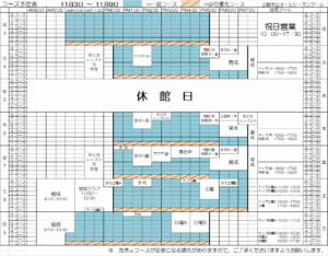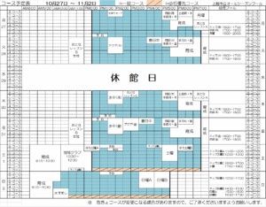 こちらでは1週間のコース予定と代替駐車場を掲載しております