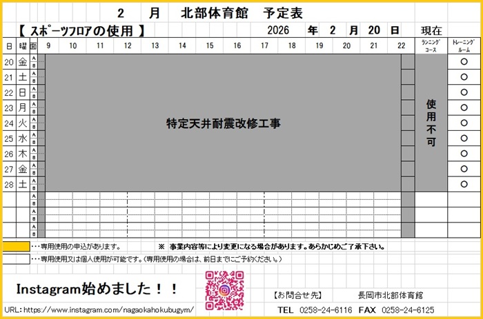 スポーツフロア及びランニングコースは、工事完了までご利用できません