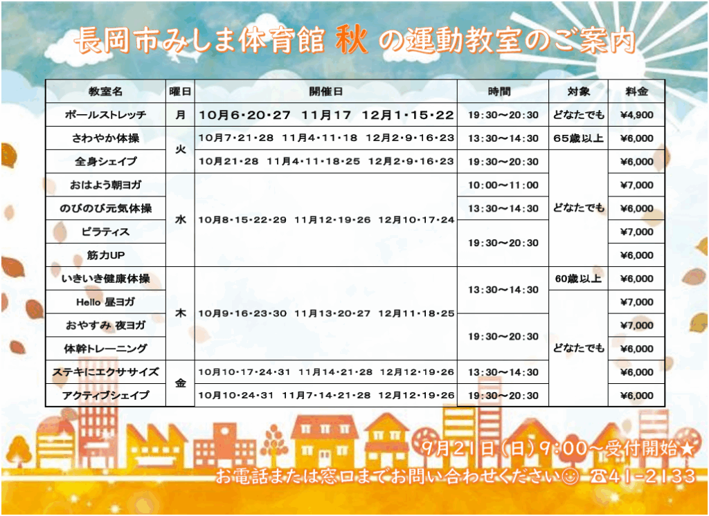令和7年度 第3期運動教室 第3期運動教室のご案内です。9月21日(日)朝9:00~受付スタートです。見学・体験は現在も随時受付中☆お申込みお待ちしております。 « 8月10日 駐車場利用に関するお知らせ