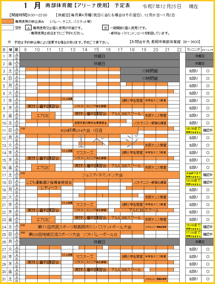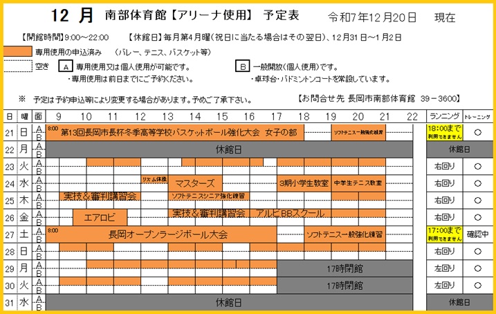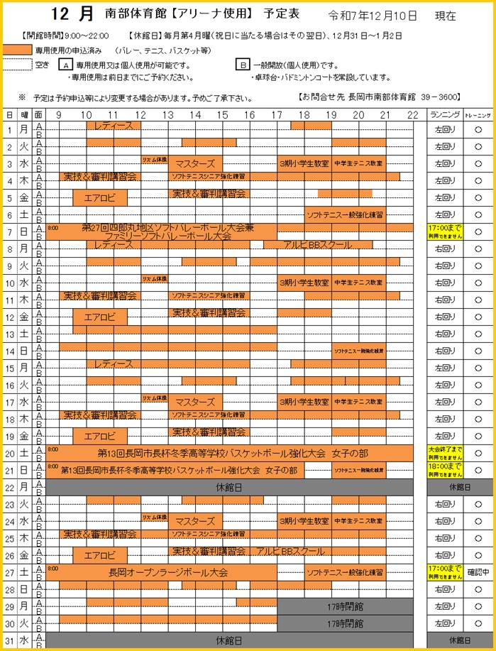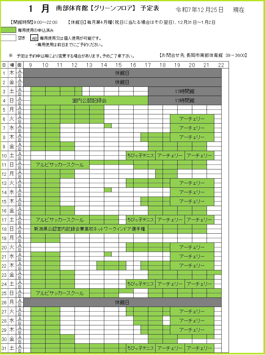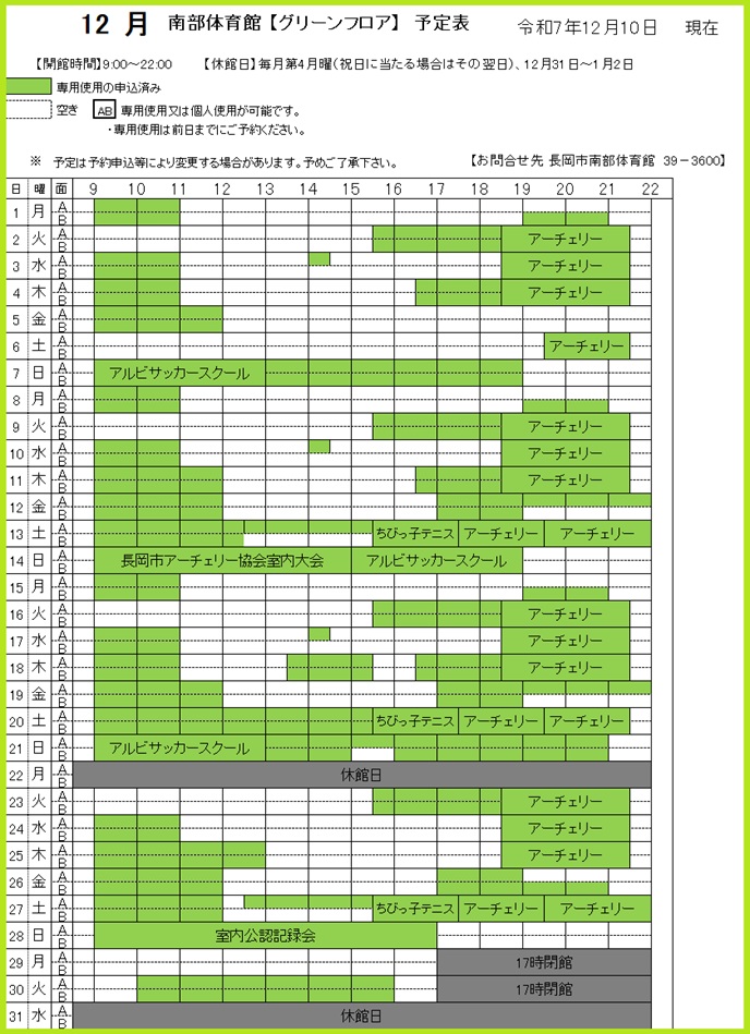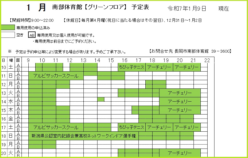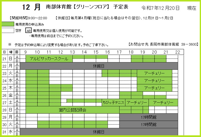 アリーナ・グリーンフロアの空き状況に関しましては、