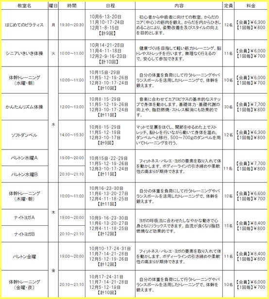 当館では、10月から12月まで第3期スポーツ教室を開催します✨