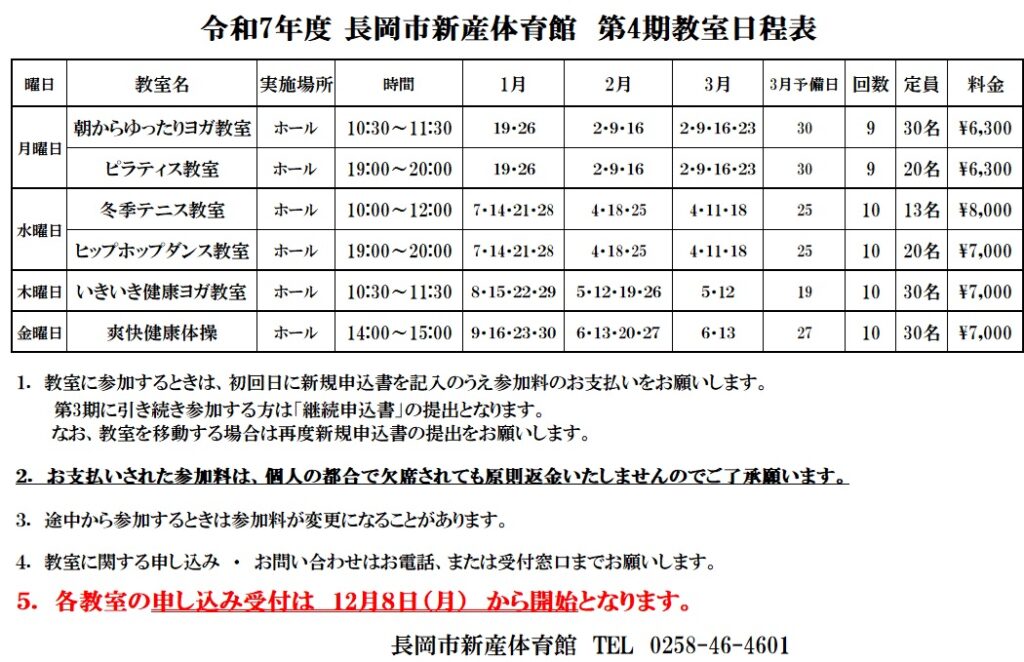 ご不明な点や教室内容の詳細はご気軽に新産体育館までお問い合わせください。